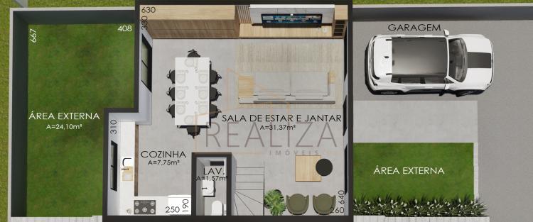 A área social é um espaço integrado e aconchegante, com sala e cozinha conectadas e piso em porcelanato. Para sua comodidade, um lavabo está disponível no andar social. A cozinha é espaçosa, com pontos para água quente e fria, pronta para receber sua pia e eletrodomésticos.